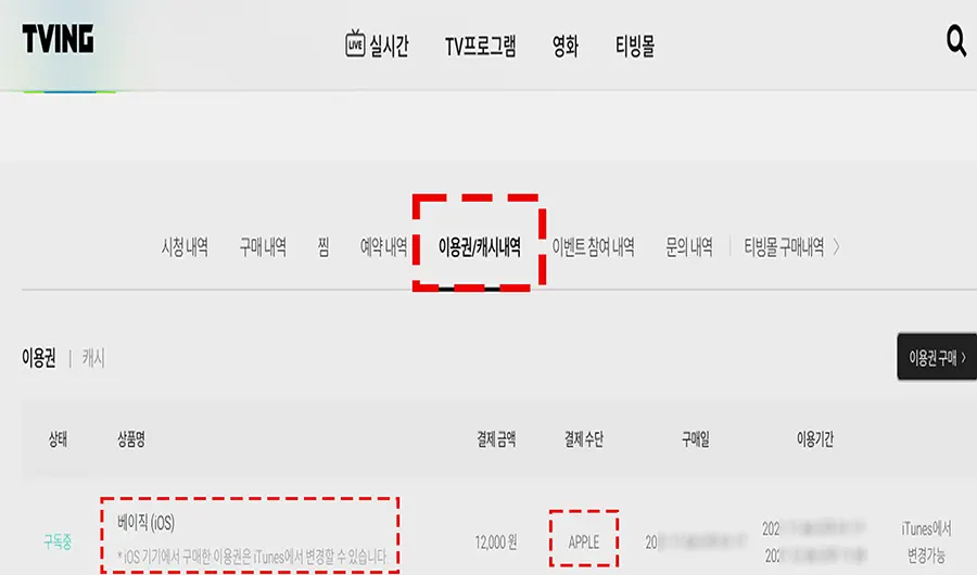 티빙 결제수단 변경 을 할 수 없는 경우이다.